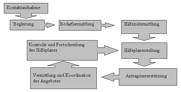 Abbildung 2: Koordination des Hilfeangebotes auf Basis der individuellen Bedarfsermittlung / Case Management nach STAHLKOPF. Quelle: KÖHLER, 1999, S.78. Entwurf: J. Neubauer